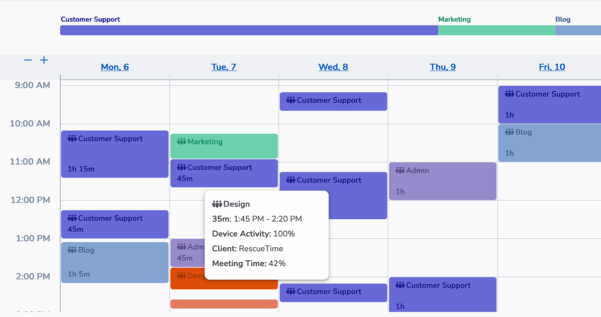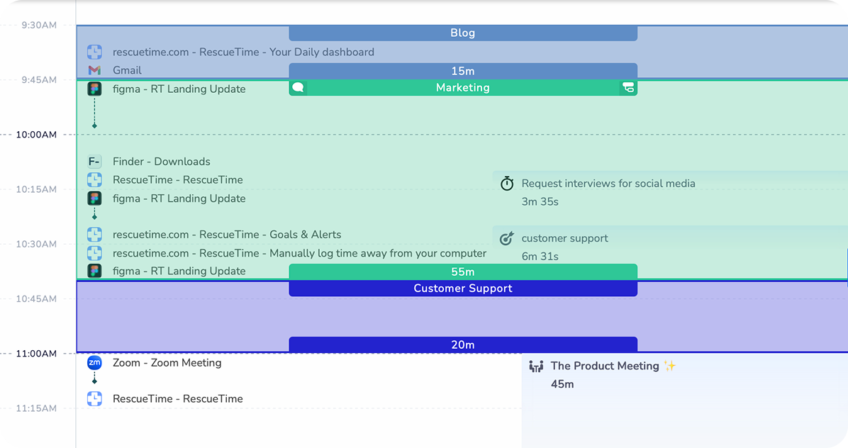 Your team’s time shouldn’t be spent tracking it. RescueTime captures work across projects automatically, generating precise timesheets and reports that make billing and planning easy.